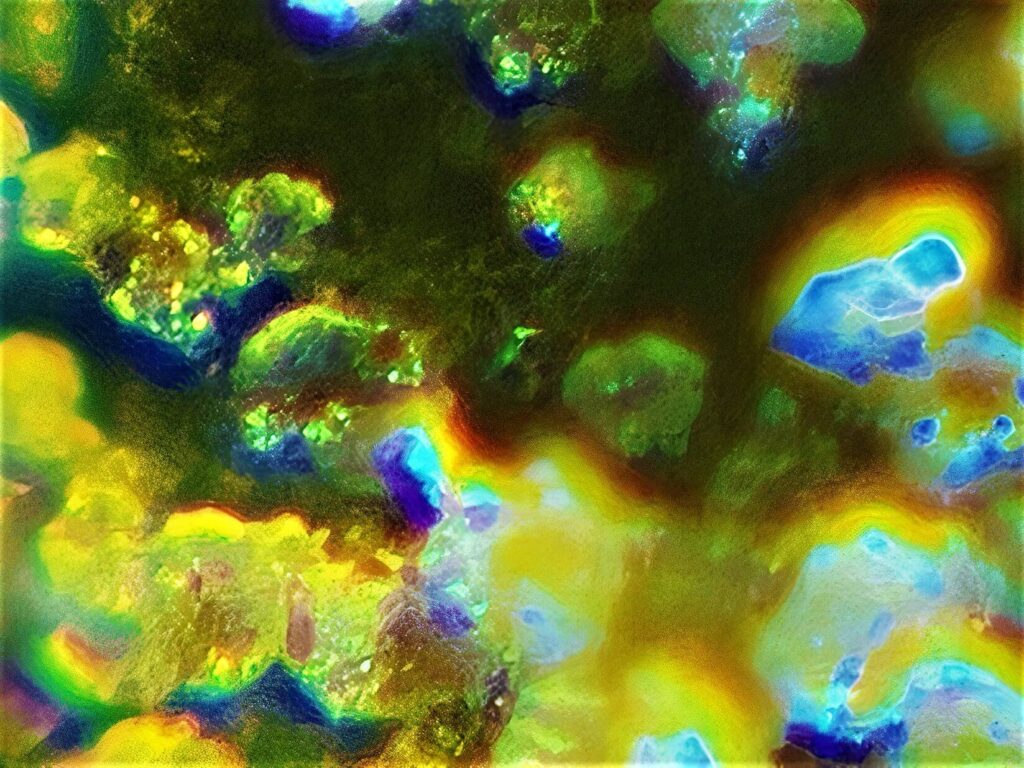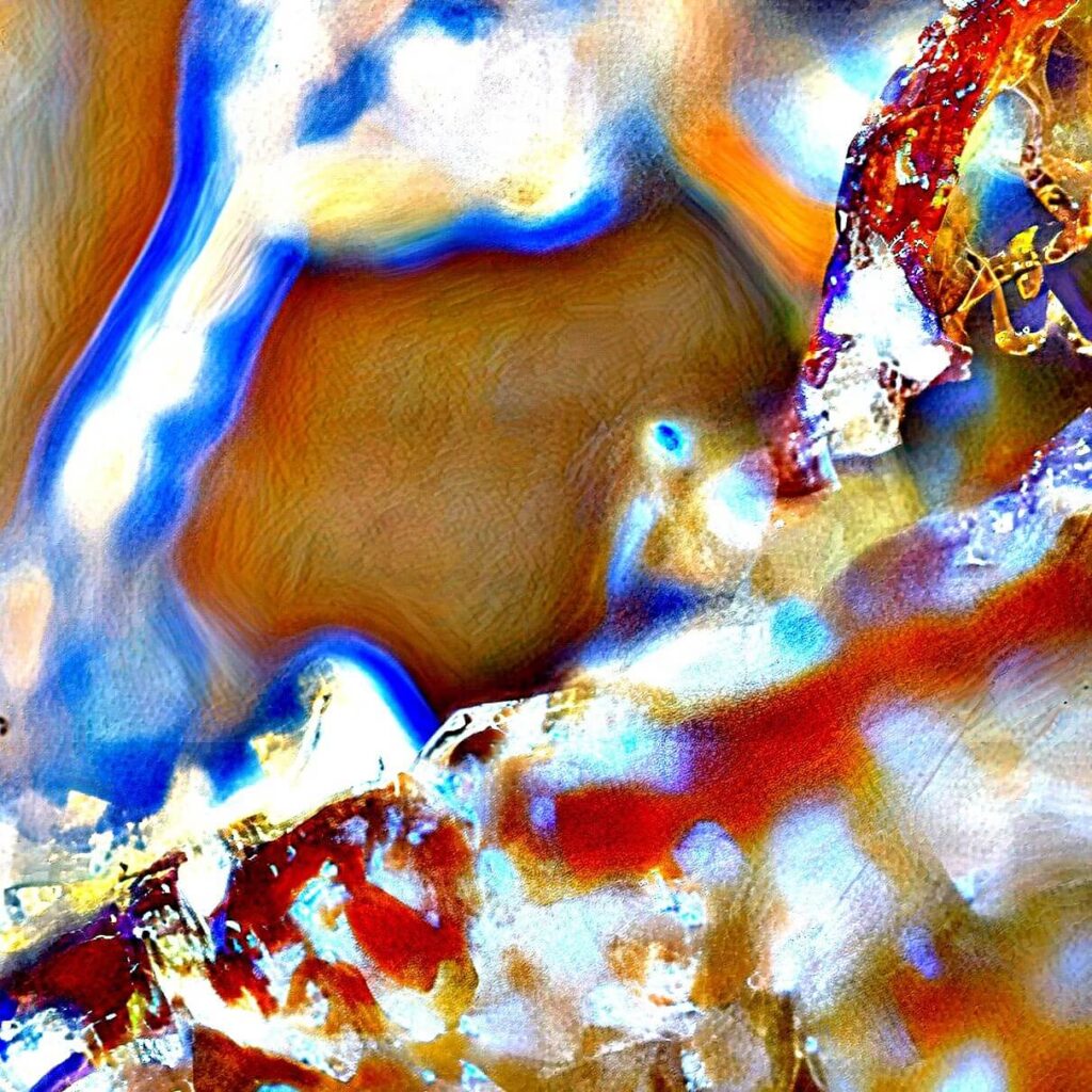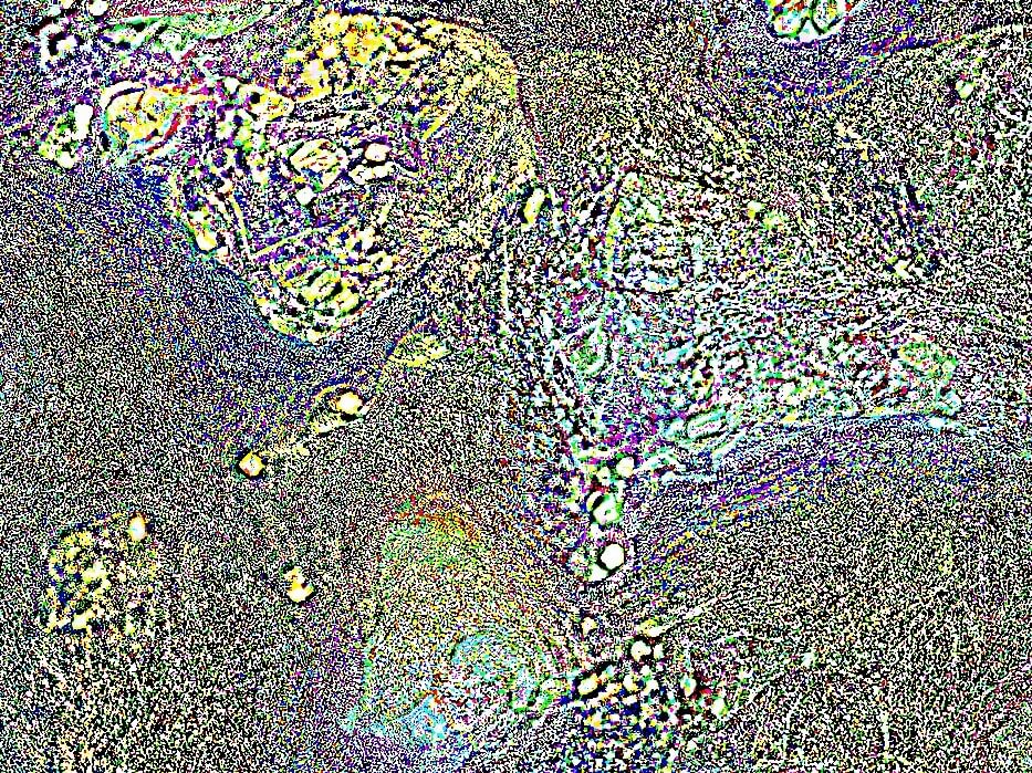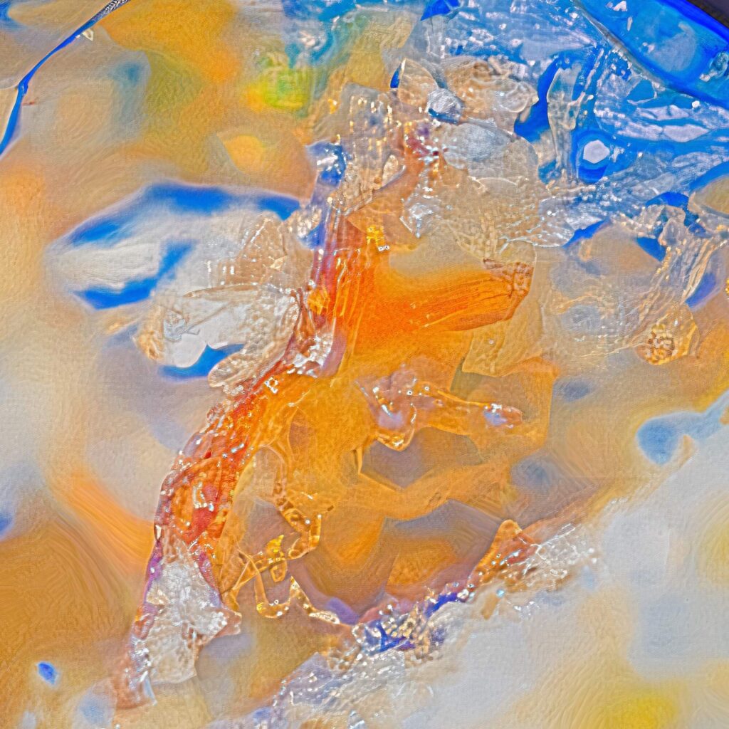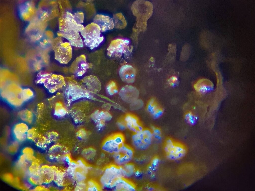 „Mikroszkóp lencséjéről készült képek, melyek alatt különböző kristályos szerkezetű anyagok vannak. Az első három kép azt a folyamatot mutatja be, hogyan változik meg a kép pixel enhancer-t használva. Jelen esetben a letsenhance.io-t. A 4. képnél ebből a sorozatból használtam Photoshop-ot is, kíváncsi voltam milyen hatást kelt, ha a már “enhance-d” képet intelligens élesítés alá vetem. Ebből kivágtam olyan kisebb részleteket amik számomra érdekes vizuális élményt adtak (5-6-7-es képek).